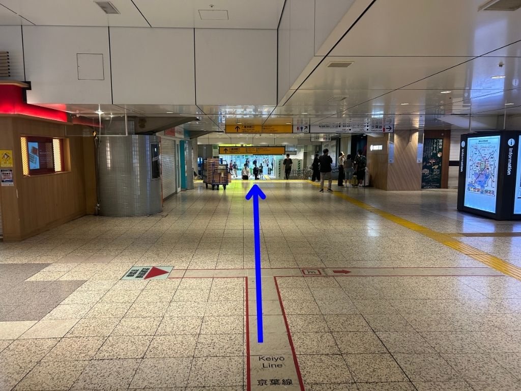 - You will see a path marked on the floor that leads to the Keiyo Line — you can use it as a guide.