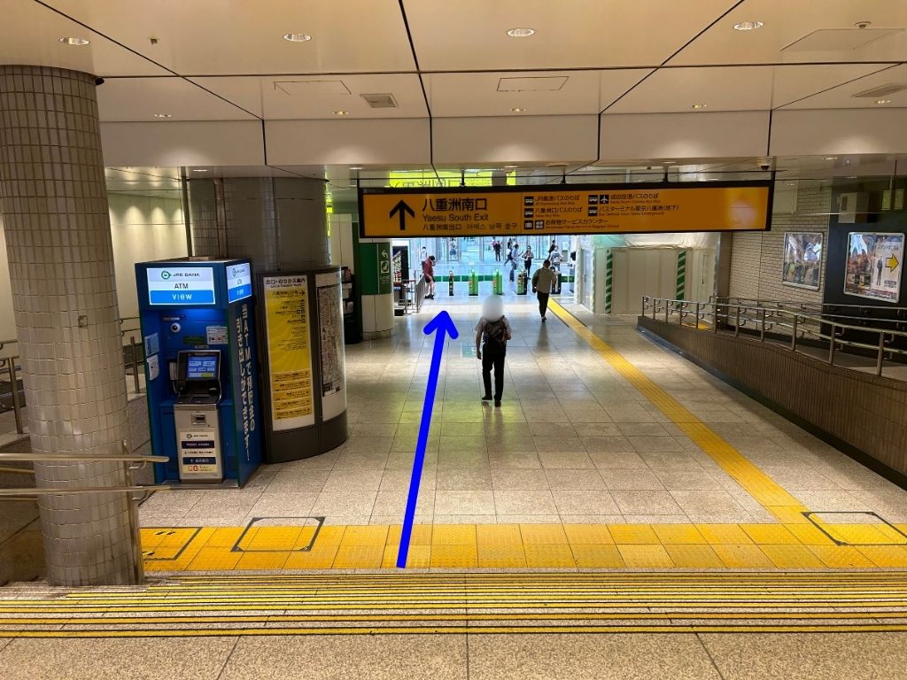 - Continue straight ahead, then go down a small staircase and exit the ticket gate at Yaesu South Exit.